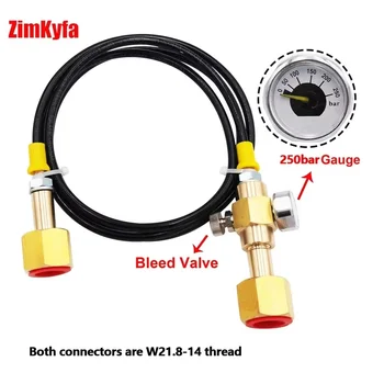 • Diving Scuba 5/8BSPP Connector G5/8 DIN300 Filling Station Charging Adapter W/ Gauge Microbore DN3 Hose for Air Inflation